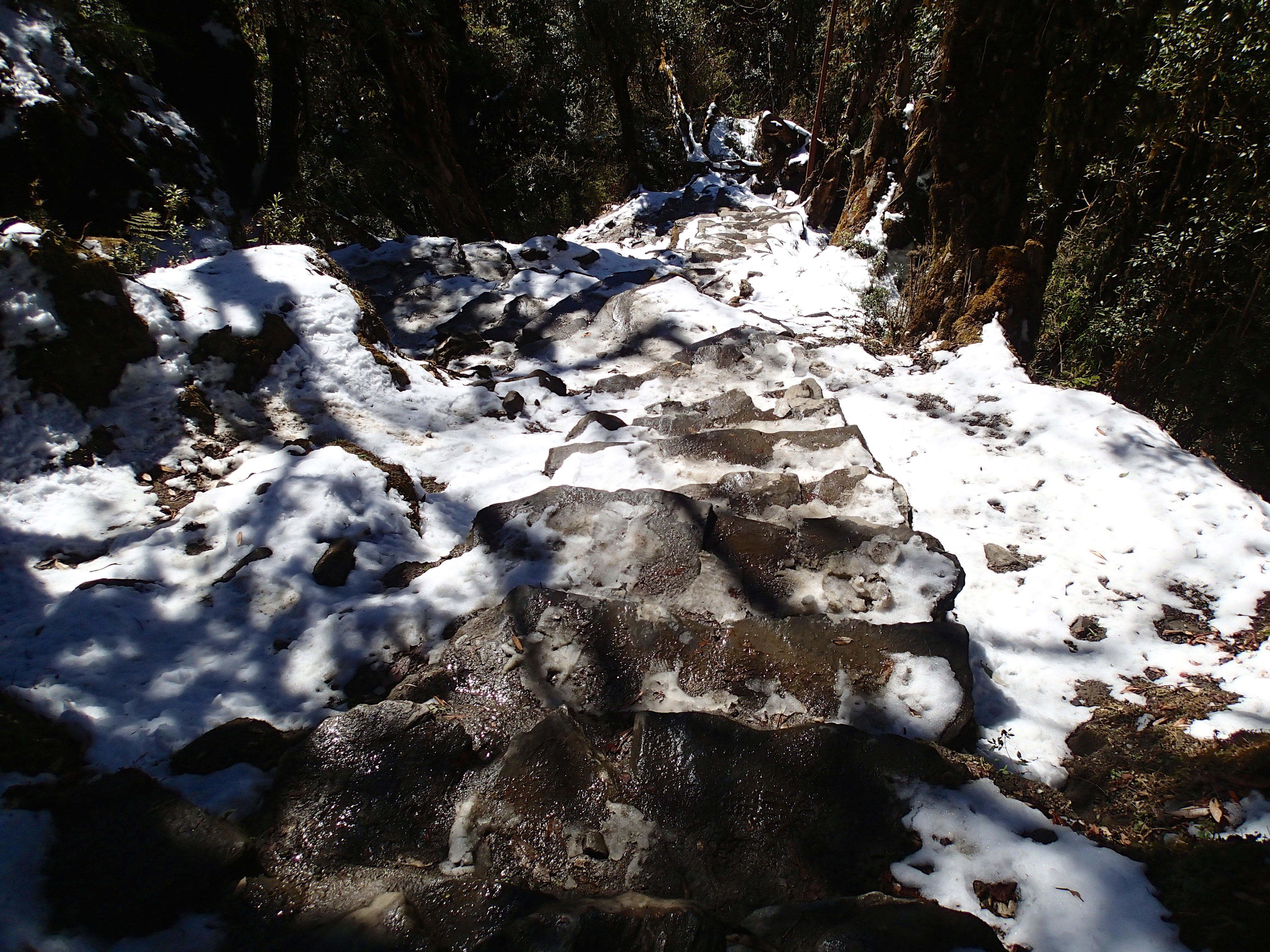 Le trek était magnifique, même avec les nuits a – 15° dans la chambre ( ça calme ) et les escaliers interminables qui ont bien failli nous achever, surtout que passé 2000 mètres la neige et la glace étaient de la partie.